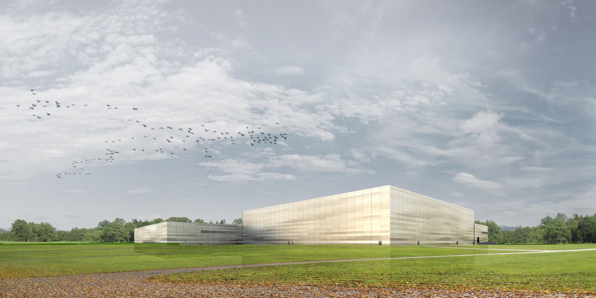 Construction d'une plateforme logistique intégrant une motorisation complète de stockage. Le bâtiment est un ensemble de hauteurs différentes, entouré de voies de livraisons et bordées d’espaces verts. Celui-ci est à simple niveau pour toute la partie entrepôts, et à simple ou double niveau pour la zone bureaux, locaux sociaux.