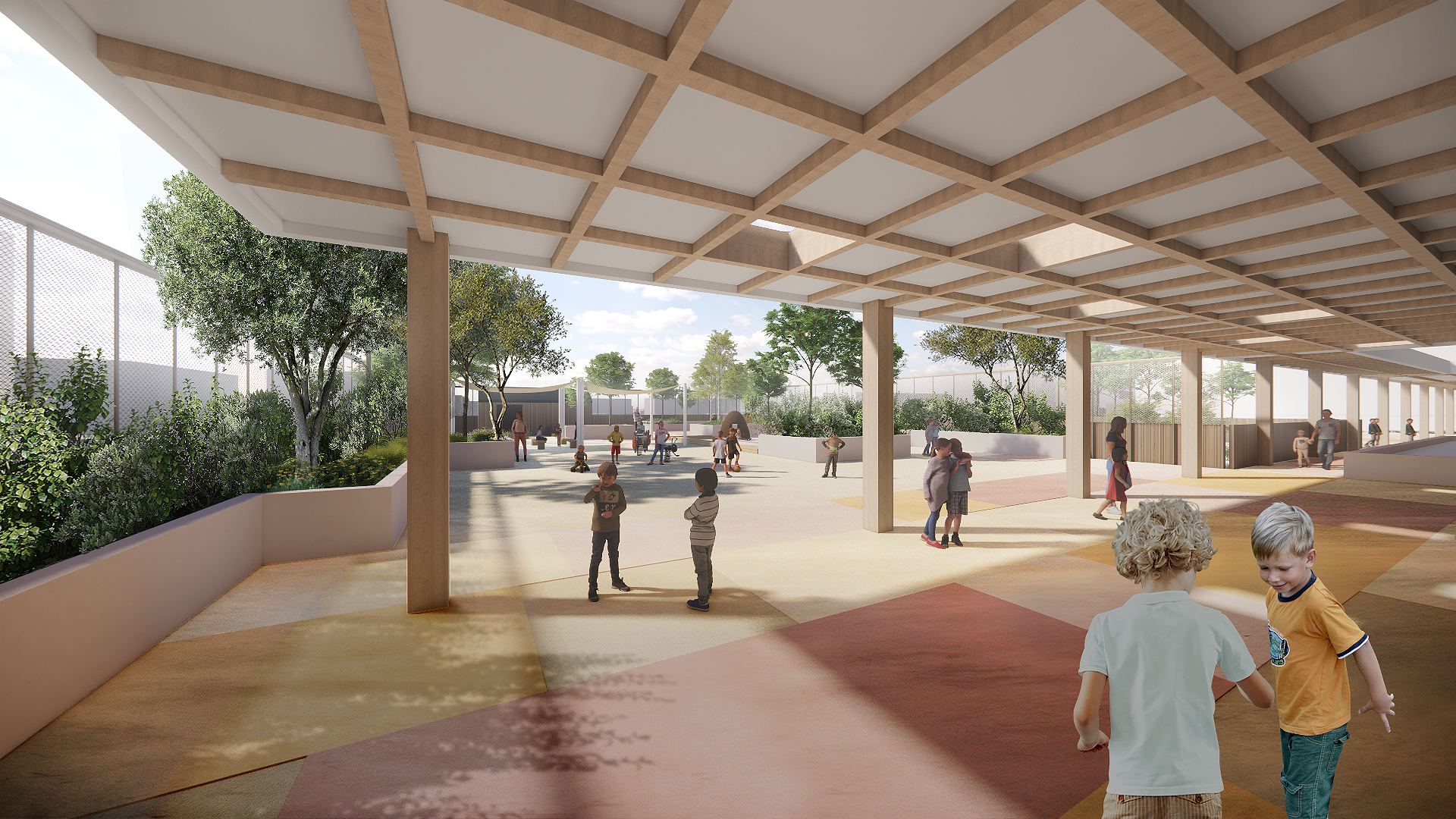 Ces 2 connexions vers le nord de la parcelle, permettent également de valoriser leurs toitures, qui deviennent des cours de récréation.