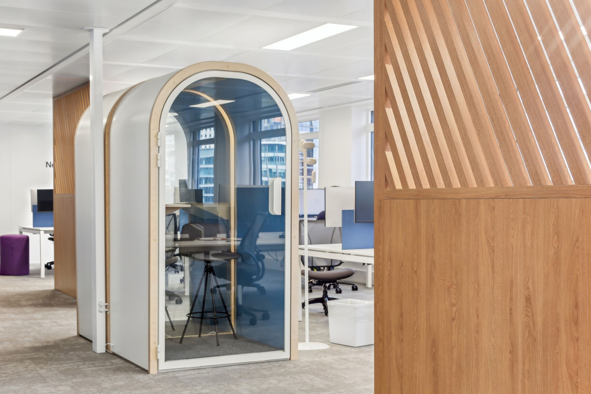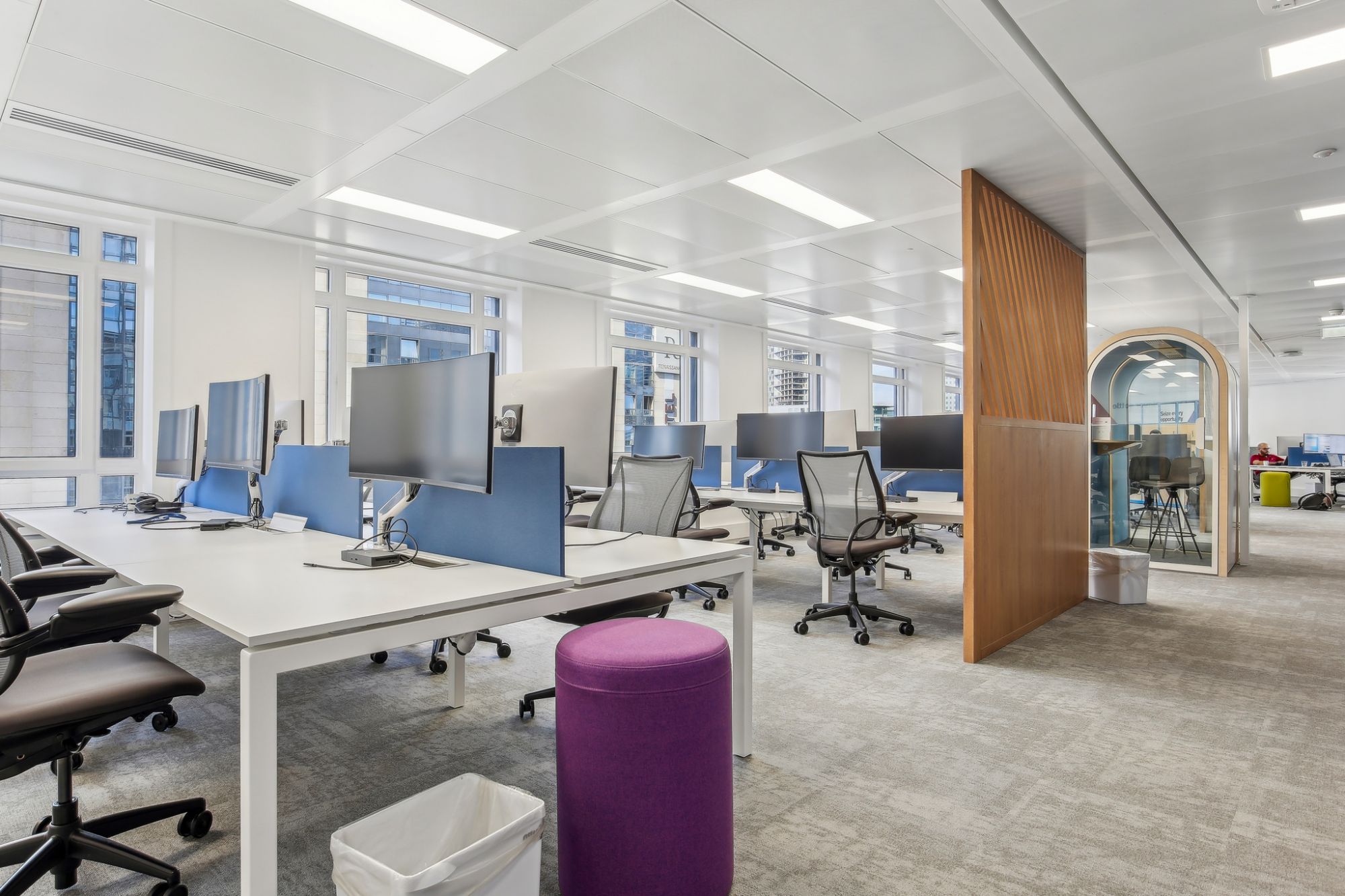 En France, Manhattan Associates était locataire d’un plateau de 800 m² dans la Tour Pacific à La Défense. Les effectifs étant en forte croissance, notre client a fait le choix de prendre à bail un plateau supplémentaire et s'est fait accompagner par nos équipes pour l'aménagement des espaces en Contractant Général.