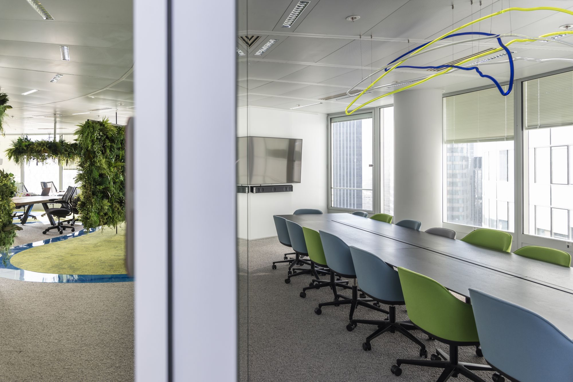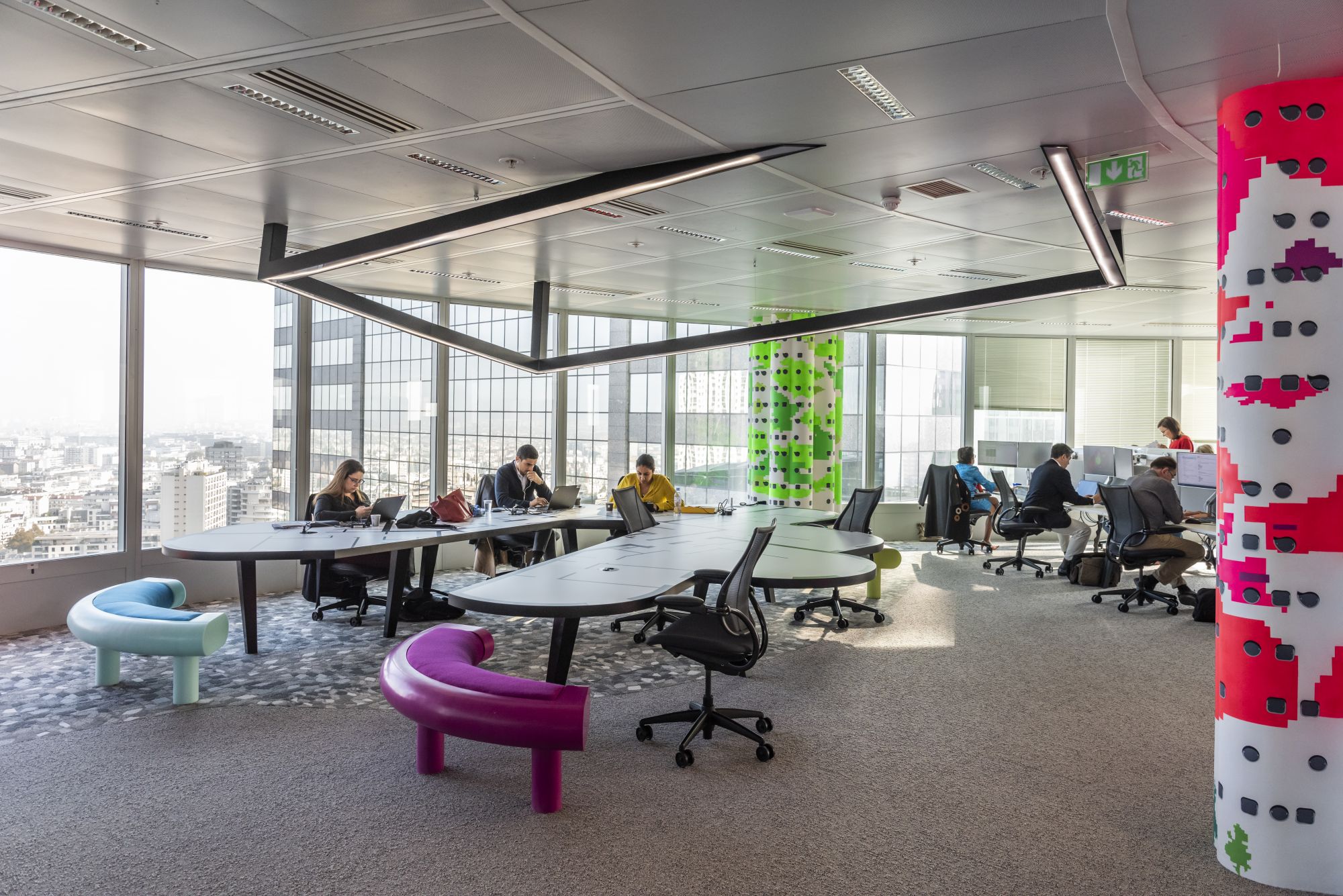 Avec son musée à ciel ouvert, le premier quartier d'affaires européen ne ressemble à aucun autre : des oeuvres architecturales côtoient des oeuvres d'art et créent une identité culturelle forte donc l'établissement est fier. C'est tout naturellement que ce patrimoine culturel et architectural a servi de fil rouge décoratif pour es locaux que le client voulait uniques en leur genre.