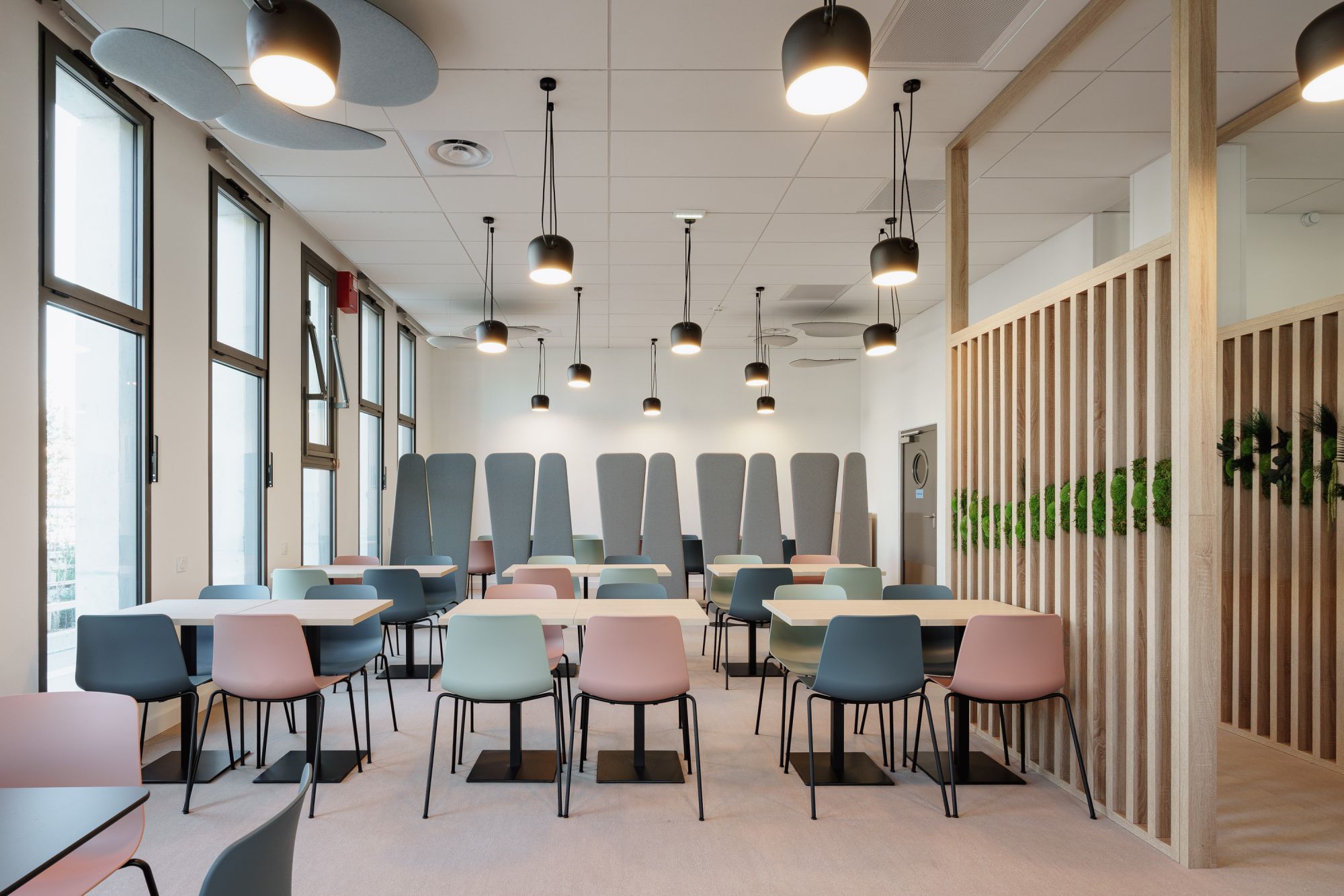- Des espaces de vie et de communication (hall, restauration d'entreprise, showroom, salle de détente, place du village)